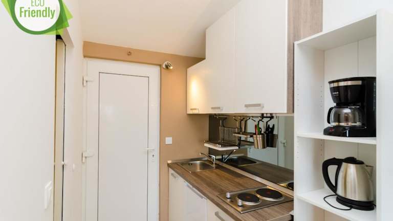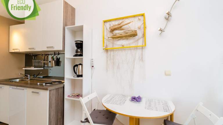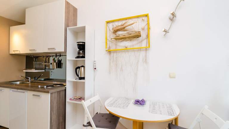 Die Unterkunft ist ausgestattet mit einer Klimaanlage, einer voll ausgestatteten Küchenzeile mit Essbereich, einem Flachbild-TV und einem eigenen Badezimmer mit Dusche und Haartrockner. Zur Ausstattung gehören ebenfalls ein Kühlschrank, eine Herdplatte, eine Kaffeemaschine und ein Wasserkocher.