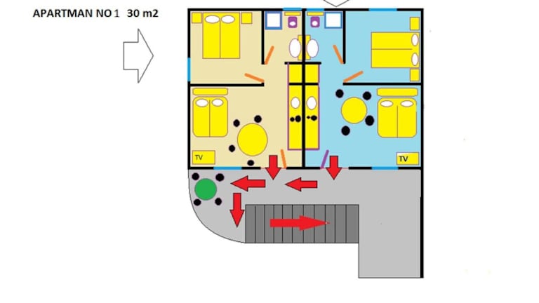 Plavi Val Apartments befindet sich in Tribunj, nur 300 m vom Strand Sovlja und 1,2 km vom Strand Zamalin entfernt. Der Strand Bristak ist 2,4 km entfernt. Die Unterkunft liegt nahe am Rathaus von Sibenik, das 16 km entfernt ist. Der Flughafen Zadar liegt 66 km von der Unterkunft entfernt und ein kostenpflichtiger Flughafentransfer ist verfügbar.