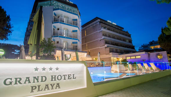 Das Grand Hotel Playa befindet sich direkt am Meer in Lignano Sabbiadoro, nur 5 Gehminuten vom Zentrum entfernt. Die Umgebung bietet Zugang zum eigenen Strand, der mit Sonnenschirmen und Liegen ausgestattet ist.