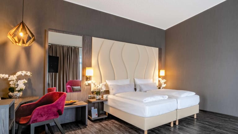 Das PLAZA INN Heilbronn in der Käthchenstadt Heilbronn erreichen Sie ganz leicht und in wenigen Minuten von der Autobahn aus. Das Stadtzentrum von Heilbronn mit vielen Einkaufmöglichkeiten und vielfältiger Gastronomie ist nur 2 Kilometer vom Hotel entfernt. Durch den Autobahnzubringer gelangen Sie in nur 10 Minuten mit dem Auto zum Kongresszentrum redblue oder nach Neckarsulm. Das PLAZA INN Heilbronn verfügt über 100 Zimmer, die mit kostenfreiem WLAN, Flatscreen-TV, Tee- und Kaffeestation und Klimaanlage ausgestattet sind. Lassen Sie sich in unserem hoteleigenen Restaurant mit herrlicher Sonnenterrasse verwöhnen und entspannen Sie anschließend in unserem einladenden Saunabereich. Nicht weit von unserem Haus entfernt befindet sich der Neckar, ein schöner Fluss, welcher zum Radfahren und Laufen einlädt. Das PLAZA INN Heilbronn ist ein optimaler Ausgangspunk für Ihre Ausflüge in die Umgebung Heilbronns. Besuchen Sie Highlights wie z.B. die Experimenta in Heilbronn, das Technikmuseum in Sinsheim, die historische Altstadt von Bad Wimpfen oder den Erlebnispark Tripsdrill in der Nähe von Cleebronn.