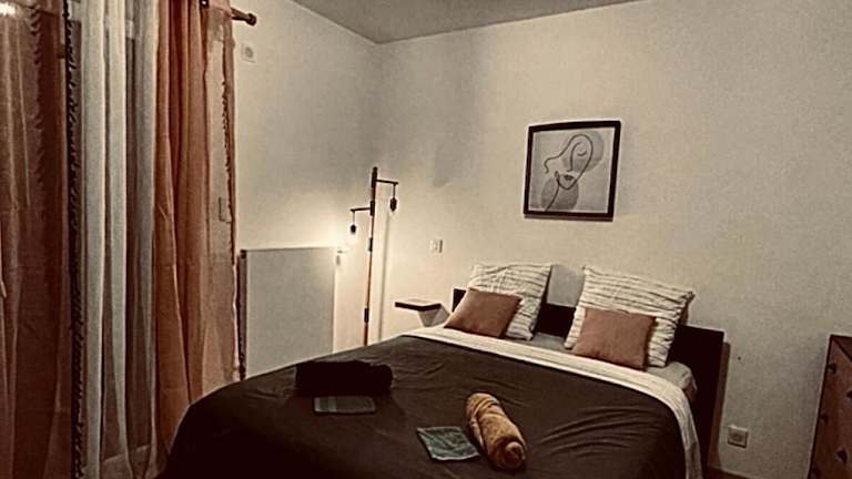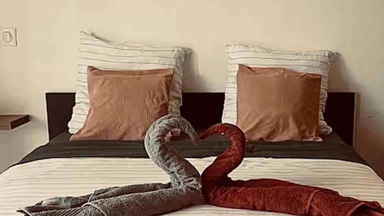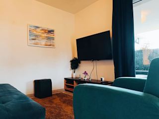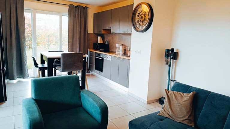 Die Ferienwohnung verfügt über ein Schlafzimmer, eine gut ausgestattete Küche mit Kühlschrank und Geschirrspüler sowie ein Wohnzimmer. Zur Ausstattung gehören zudem ein Flachbild-TV, Handtücher und Bettwäsche. Die Zimmer sind schallisoliert und bieten Einrichtungen für einen komfortablen Aufenthalt.