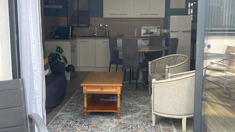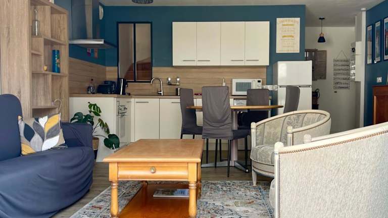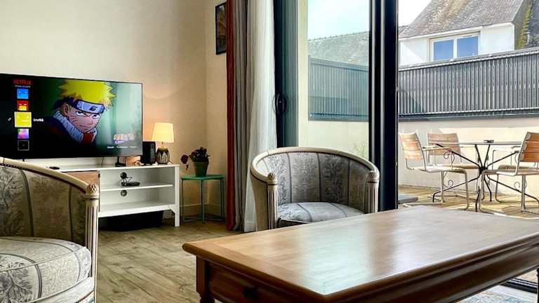 Plein centre Auray - Spacieux duplex T2 mit einer grossen, sonnigen Terrasse bietet eine heimelige Atmosphäre. Diese Ferienwohnung ist von einem privaten Gastgeber geführt und eignet sich ideal für Gäste, die eine geräumige Unterkunft suchen.