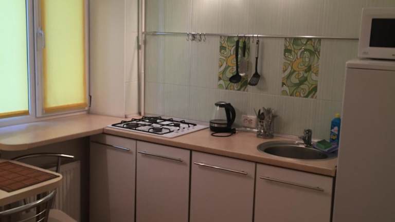 Pobeda 6 ist eine klimatisierte Ferienwohnung, die als privat geführte Unterkunft angeboten wird. Diese Unterkunft umfasst ein Schlafzimmer und bietet Annehmlichkeiten wie einen Essbereich und eine voll ausgestattete Küche mit Kühlschrank und Mikrowelle. Kostenloses Wifi steht in der ganzen Unterkunft zur Verfügung.