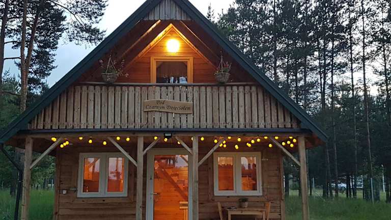 Das Ferienhaus Pod Czarnym Dzięciołem bietet Übernachtungsmöglichkeiten mit einer privaten Terrasse und einem Whirlpool. Gäste können den Garten, Grillmöglichkeiten und eine Sonnenterrasse nutzen. Die Unterkunft ist vielfältig ausgestattet und bietet heimelige Annehmlichkeiten wie einen Spielplatz für Kinder.