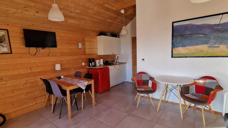Das Chalet verfügt über ein Schlafzimmer, ein Wohnzimmer und ein Badezimmer mit Dusche. Es gibt auch eine Terrasse und einen Balkon, von dem aus Sie den atemberaubenden Bergblick genießen können. Die Küche ist mit einem Kühlschrank und einem Kochfeld ausgestattet. Kostenloses WLAN ist in der Unterkunft verfügbar.