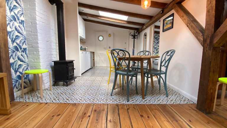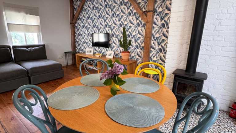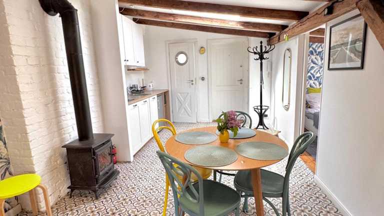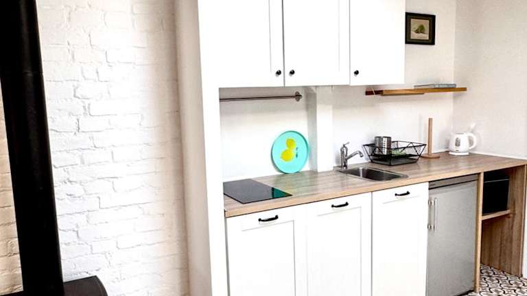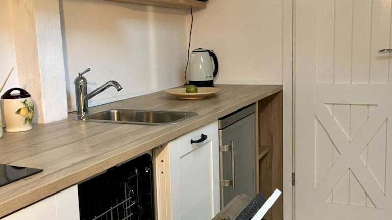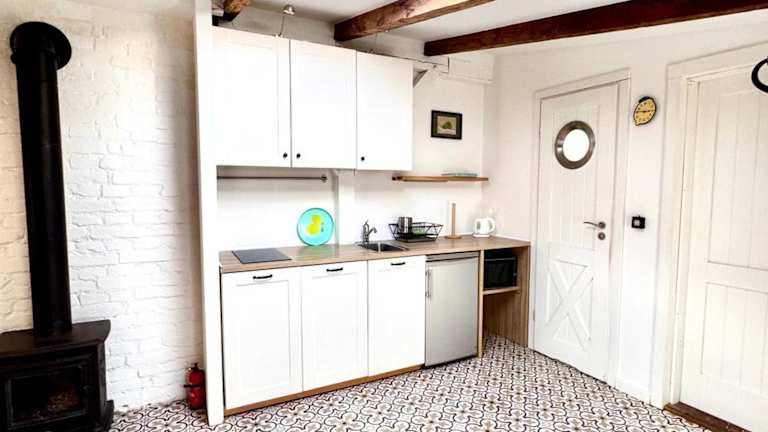 Die Ferienwohnung besteht aus 1 Schlafzimmer, einem Wohnzimmer und einer voll ausgestatteten Küche mit Kühlschrank und Wasserkocher. Ein Badezimmer ist mit einer Dusche und einem Haartrockner ausgestattet. Handtücher und Bettwäsche werden bereitgestellt.