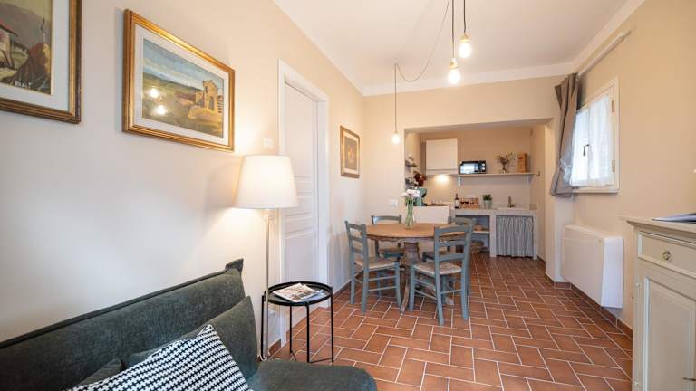 Die Wohneinheiten der Unterkunft Podere Cornacchino verfügen über einen Sitzbereich, einen Flachbild-TV, eine voll ausgestattete Küche mit Kühlschrank und Mikrowelle sowie ein eigenes Badezimmer mit Bidet und kostenlosen Pflegeprodukten. Ein weiteres voll ausgestattetes Badezimmer ist mit einer Dusche und einem Haartrockner ausgestattet.