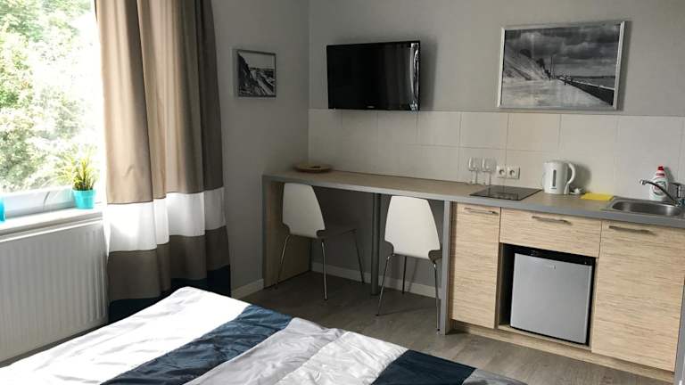 Die Apartments bieten einen Sitzbereich, einen Flachbild-Sat-TV sowie ein Badezimmer mit Dusche. Des Weiteren sind die Unterkünfte mit kostenlosem Wifi, Heizung und Nichtraucherzimmern ausgestattet. Familienzimmer sind ebenfalls verfügbar.