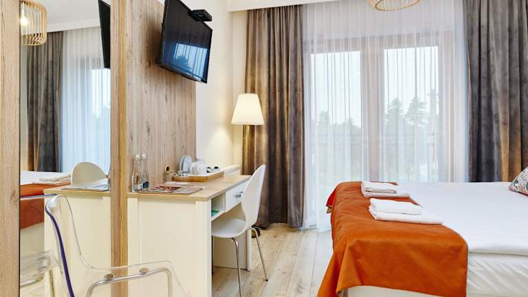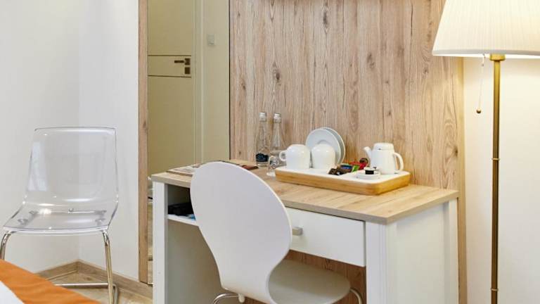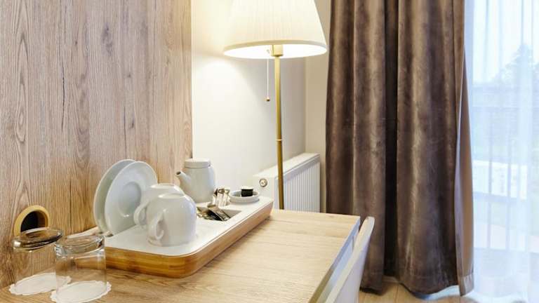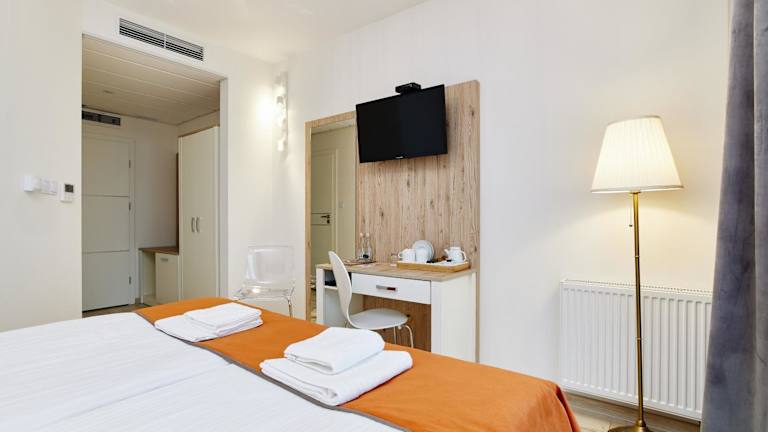 Die klimatisierten Zimmer im Pokoje Kameralne bieten einen Blick auf den Garten und sind mit einem Kleiderschrank, kostenlosem Wifi, einem Schreibtisch, einem Flachbild-TV sowie einem eigenen Badezimmer ausgestattet. Jedes Zimmer ist zusätzlich mit Bettwäsche, Handtüchern und einem Kühlschrank versehen.