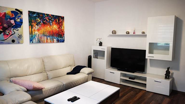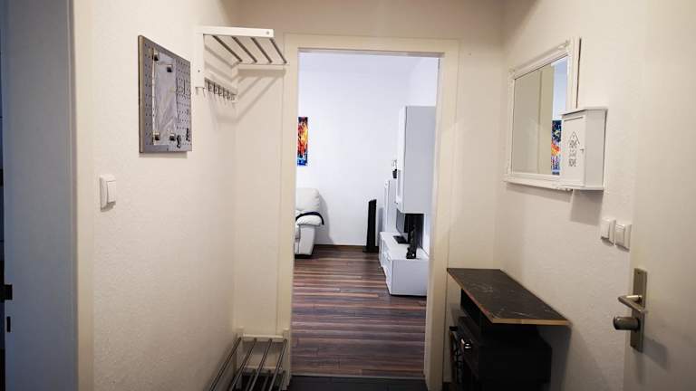 Die Ferienwohnung besteht aus einem Schlafzimmer, einem Wohnzimmer und einer voll ausgestatteten Küche mit Kühlschrank und Kaffeemaschine. Zudem steht ein Badezimmer mit Dusche und Haartrockner zur Verfügung. Handtücher und Bettwäsche werden bereitgestellt.