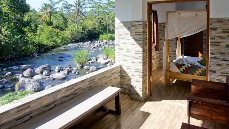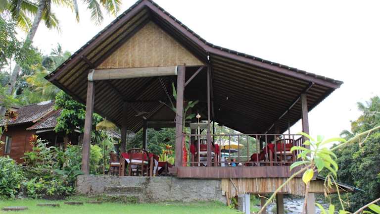 Das Restaurant Pondok Tepi Sungai serviert eine Auswahl an indonesischen Gerichten. Auf Wunsch ist es möglich, die Speisen auch auf dem Zimmer zu geniessen. Es besteht die Möglichkeit, eine Essenslieferung in die Unterkunft zu organisieren.