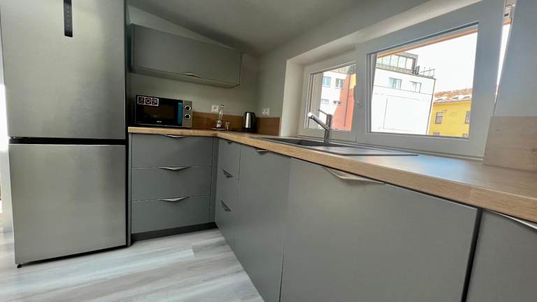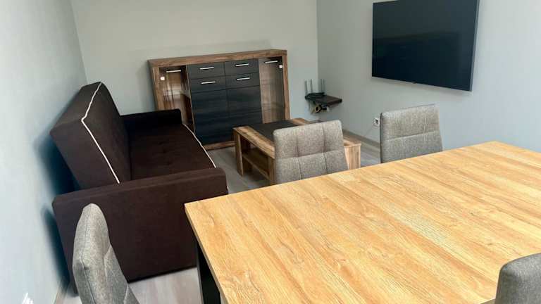 Die Ferienwohnung verfügt über zwei Schlafzimmer, ein Wohnzimmer mit Flachbild-TV, eine gut ausgestattete Küche mit Kühlschrank und Geschirrspüler sowie ein Badezimmer mit Dusche. Ein Balkon mit Stadtblick ist ebenfalls vorhanden. Handtücher und Bettwäsche werden bereitgestellt.