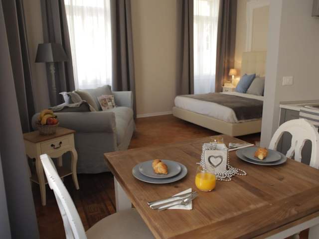 Die Zimmer in der Ponterosso Suite sind gemütlich und modern eingerichtet. Sie bieten Parkettböden, klimatisierte Räume und einen Flachbild-Sat-TV für Unterhaltung. Zur weiteren Ausstattung gehören ein Safe und eine Minibar, die Ihren Aufenthalt noch angenehmer machen. Kostenloses WLAN steht in allen Zimmern zur Verfügung.