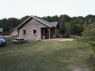 Die Ferienhäuser sind gemütliche Landhäuser aus Holz, die mit einer Veranda ausgestattet sind. Die Häuser bieten Platz für zwei Erwachsene und vier Kinder. Für die Kinder sind Doppelbetten eingerichtet. Eine Internetverbindung steht ebenso zur Verfügung wie ein eigener Fernseher. Das Hotel verfügt über ein Badezimmer mit Dusche, während eine Koch- sowie eine Sitzecke genutzt werden können.