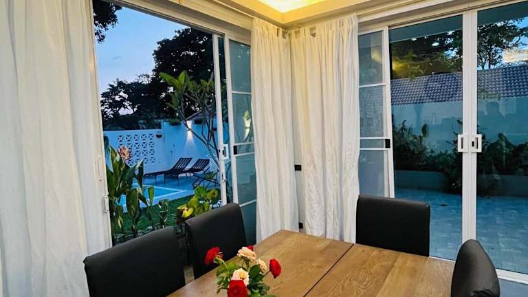 Die POOL VILLA TIPPAWAN bietet Übernachtungsmöglichkeiten in einer privaten Villa mit eigenem Pool. Die Unterkunft verfügt über einen Aussenpool, einen Garten und eine Terrasse, die zur Entspannung einladen. Die Villa ist klimatisiert und bietet Platz für bis zu 8 Gäste in 4 Schlafzimmern.