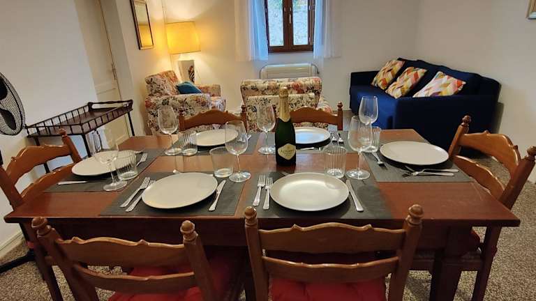 Die Ferienwohnung verfügt über zwei Schlafzimmer, ein Wohnzimmer mit einem Flachbild-TV, eine gut ausgestattete Küche sowie ein Badezimmer mit Bidet und Badewanne oder Dusche. Die Einrichtung ist funktional und gut durchdacht, um den Gästen eine angenehme Aufenthaltsqualität zu bieten.