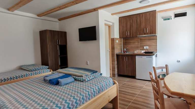 Die Wohneinheiten sind mit einem Sitzbereich, einem Flachbild-TV, einer voll ausgestatteten Küche mit Kühlschrank und Herdplatte sowie einem eigenen Badezimmer mit Dusche und kostenlosen Pflegeprodukten ausgestattet. Alle Zimmer verfügen zudem über einen Balkon mit Blick auf den Garten.