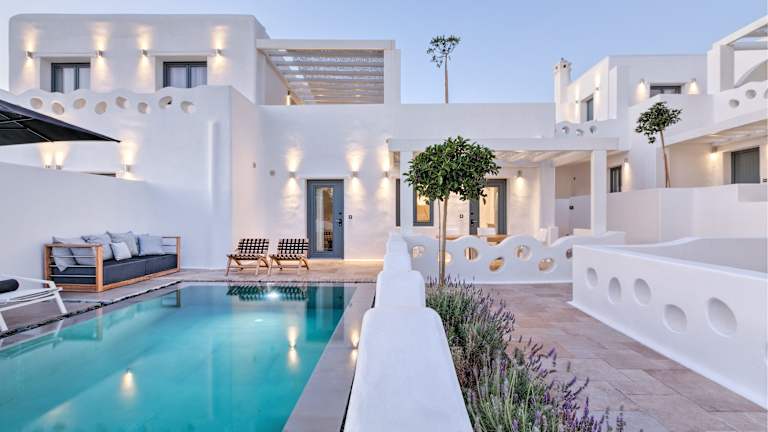 Das Portes Suites & Villas Mykonos überzeugt durch seine traditionelle und modern gestaltete Architektur. Der Komplex bietet eine heimelige Atmosphäre mit verschiedenen Annehmlichkeiten, darunter einen Aufzug, eine Rezeption und einen Garten zur Entspannung.
