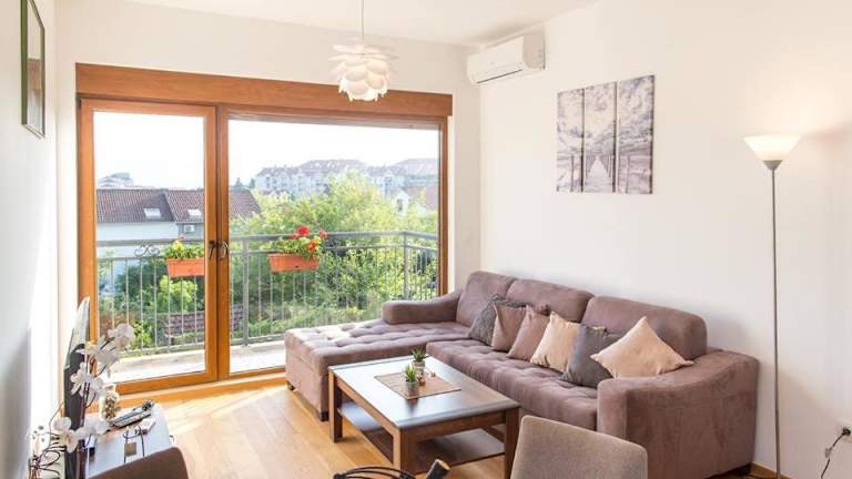 Die Unterkunft Porto Apartmani bietet klimatisierte Übernachtungsmöglichkeiten mit kostenlosem Wifi und ermöglicht den Zugang zu einer Terrasse. Die Veranda oder der Patio bieten die Möglichkeit, die Aussicht auf die Stadt zu geniessen.