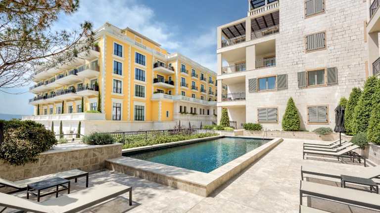 Porto Montenegro Tara 302 bietet eine moderne Ferienwohnung mit einem saisonalen Aussenpool, Fitnesscenter und gemütlicher Terrasse. Die Unterkunft überzeugt durch kostenfreies Wifi und bietet einen herrlichen Blick auf die Berge und den Garten.