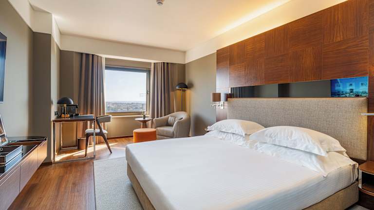 In den geräumigen, schallisolierten Zimmern finden die Gäste eine Klimaanlage, einen Balkon, ein Doppel- oder Kingsize-Bett sowie Annehmlichkeiten wie eine Minibar, einen Kühlschrank und eine Tee-/Kaffeemaschine. WLAN ist in allen Zimmern ohne Gebühr verfügbar, ebenso wie ein Safe. Die Badezimmer sind mit Dusche und Badewanne ausgestattet und bieten Haartrockner sowie Kosmetikartikel.