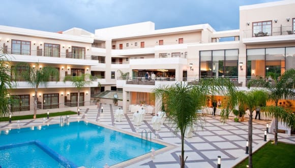 Das Resort bietet eine große Auswahl an Restaurants und Bars, darunter drei Restaurants, drei Bars und ein Café. Das Hauptrestaurant bietet eine Vielzahl von Gerichten, darunter griechische, internationale und Diätküche sowie glutenfreie, lactosefreie, vegetarische und koschere Gerichte. Im Sky-Roof Garden Restaurant und im Mironi Beach Restaurant können die Gäste auch die lokale Küche genießen.