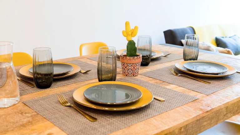 Die Ferienwohnung besteht aus einem Schlafzimmer, einem Wohnzimmer und einer voll ausgestatteten Küche mit Kühlschrank sowie Kaffeemaschine. Ein Badezimmer mit Dusche und Haartrockner ist ebenfalls vorhanden. Handtücher und Bettwäsche werden bereitgestellt. Die Unterkunft ist klimatisiert.
