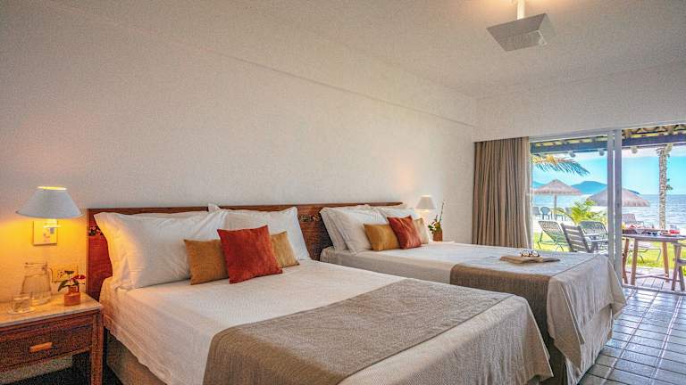 Die klimatisierten Unterkünfte bieten einen Zugang zum Meer und sind mit einer Minibar, einem Bad sowie einem TV mit Sky-Zugang ausgestattet. Alle Zimmer verfügen über kostenfreies Wifi. Die Suiten sind grösser und verfügen über einen Wohnbereich mit Sofas oder Schlafsofas, einige bieten zudem einen Balkon. Einige Unterkünfte haben direkten Zugang zum Strand.