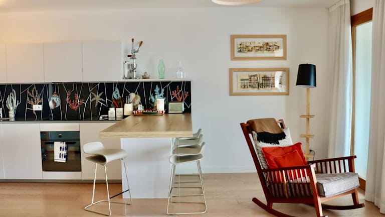 Die Unterkunft liegt direkt am Strand und befindet sich etwa 1,4 km vom Strand Spiaggia Castelreggio entfernt. Schloss Miramare ist 15 km entfernt und der Bahnhof Triest befindet sich in 22 km Entfernung. Der nächstgelegene Flughafen ist der Flughafen Triest, der 20 km entfernt ist.