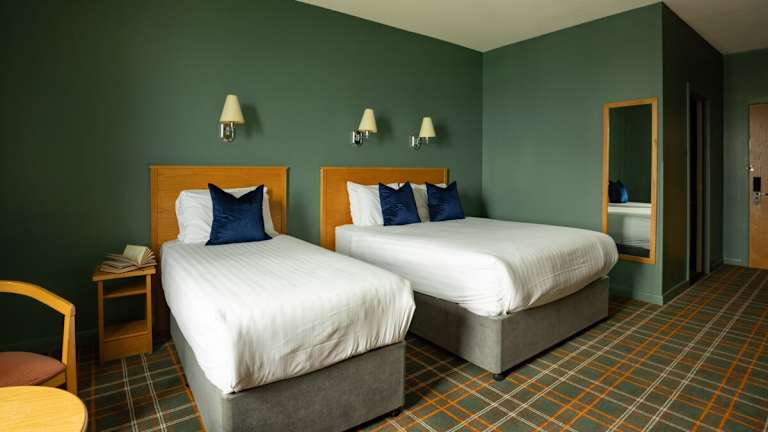 Die Zimmer sind mit Teppichböden und einer Heizung ausgestattet. Die Einrichtung umfasst ein Doppelbett, ein Queensize-Bett oder ein Kingsize-Bett sowie ein Badezimmer mit Dusche und Badewanne. Weitere Annehmlichkeiten umfassen einen TV mit Satelliten-/Kabelempfang, einen Safe, einen Schreibtisch und eine Tee-/Kaffeemaschine. Die Gäste können auch rollstuhlgerechte Zimmer mit barrierefreiem Badezimmer anfragen.