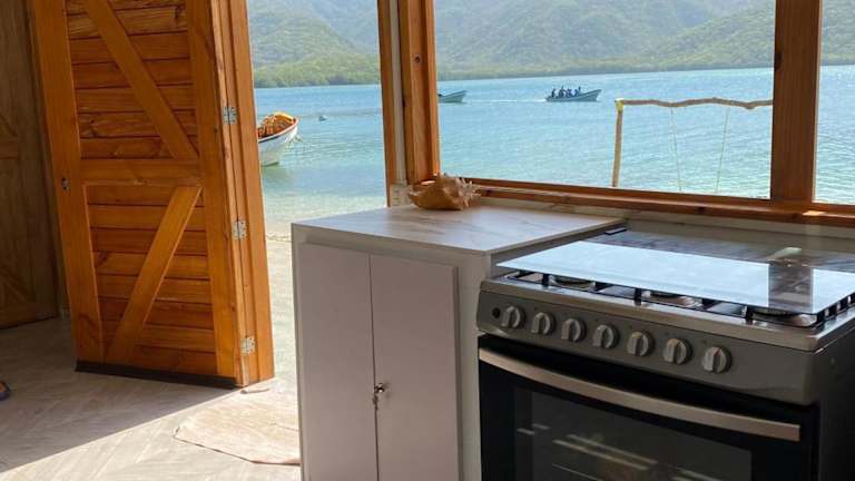 Die Unterkunft ist mit einer Küche ausgestattet, die über einen Kühlschrank, einen Ofen und eine Herdplatte verfügt. Keine Informationen zu Verpflegungsmöglichkeiten, wie Frühstück oder Halbpension, vorhanden.
