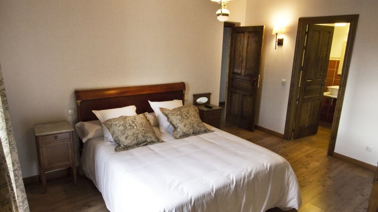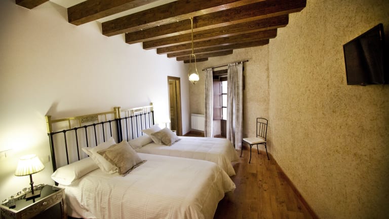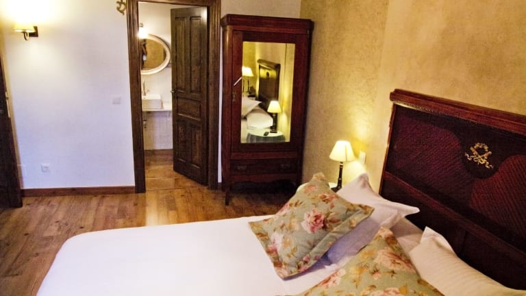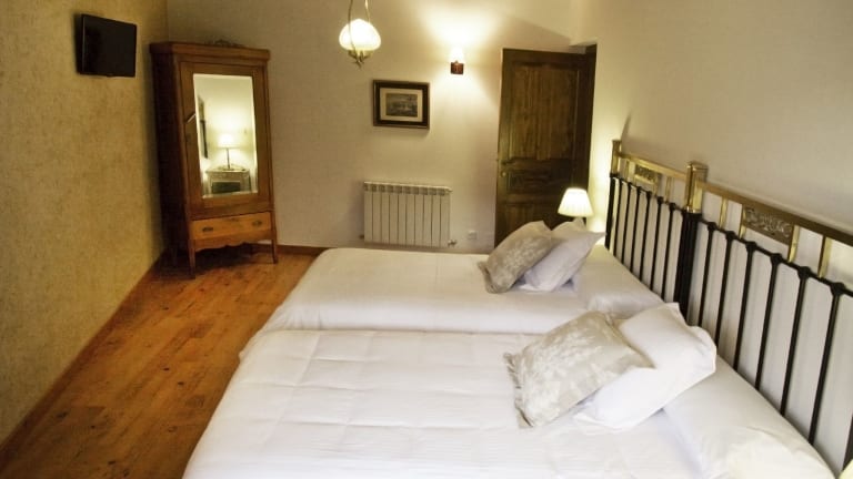 Jedes Zimmer in der Posada Real del Buen Camino ist ausgestattet mit einem Kleiderschrank, einem Flachbild-TV, einem eigenen Badezimmer, Bettwäsche und Handtüchern.
