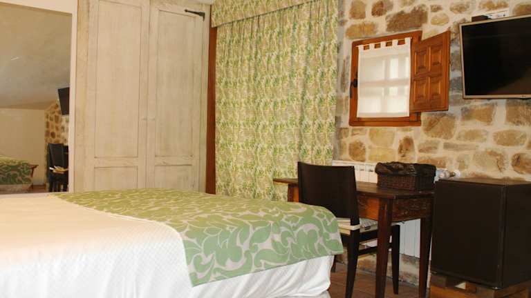 Jedes Zimmer im Posada Trebuesto de Guriezo hat einen Kleiderschrank, einen Schreibtisch, einen Flachbild-TV und ein eigenes Bad.
