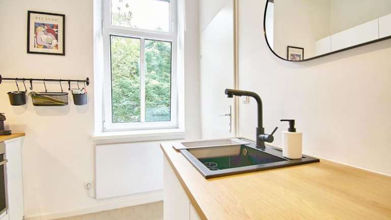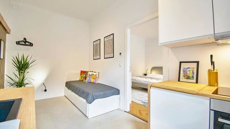 Die Ferienwohnung besteht aus 1 Schlafzimmer, einem Wohnzimmer und einer voll ausgestatteten Küche mit einem Kühlschrank und einer Kaffeemaschine. Zudem gibt es 1 Badezimmer mit einer Dusche und kostenlosen Pflegeprodukten. Handtücher und Bettwäsche werden bereitgestellt.