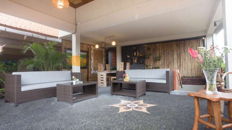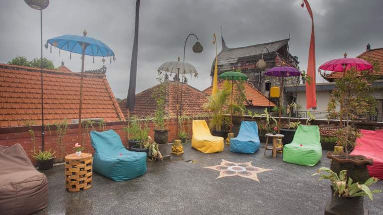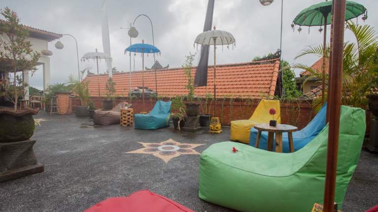 Einige Zimmer im Poshtel Ubud sind mit einem Sitzbereich ausgestattet, welcher zum Entspannen einlädt.