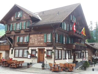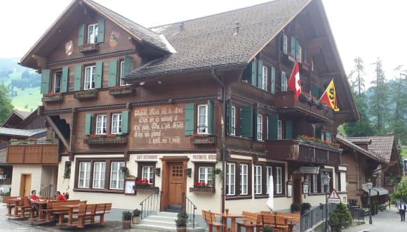 Das 1845 erbaute Posthotel Rössli ist das älteste Hotel in Gstaad und hat ein typische Schweizer Ambiente mit seinem alpenländischen Stil und Holzmöbeln.
