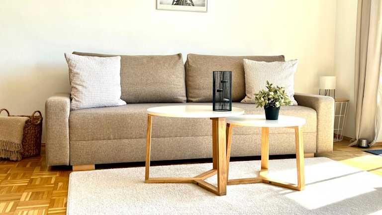 Die Ferienwohnung besteht aus zwei Schlafzimmern, einem Wohnzimmer und einer voll ausgestatteten Küche mit Kühlschrank und Kaffeemaschine. Zu den Badezimmern gehören eine Dusche sowie kostenlose Pflegeprodukte. Handtücher und Bettwäsche werden bereitgestellt. Die Unterkunft ist Nichtraucher und es stehen ein Babybett sowie Gartenmöbel zur Verfügung.