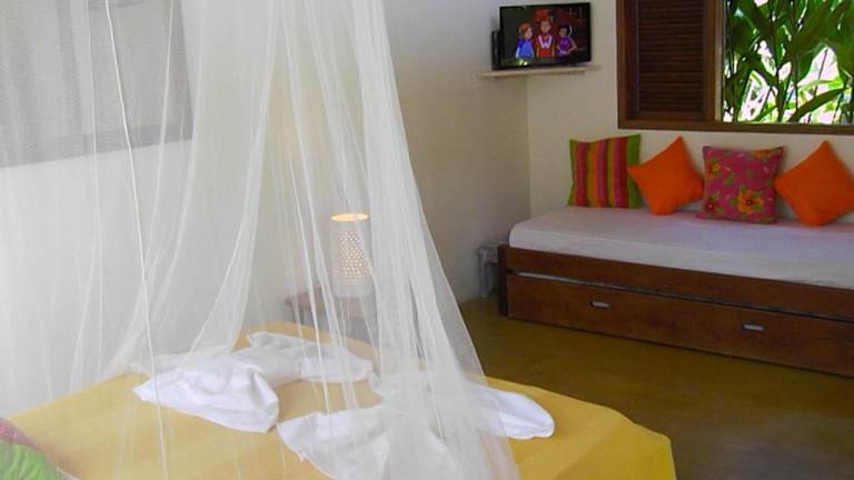 Die Zimmer, Chalets und Ferienhäuser sind alle mit Klimaanlage, kostenfreiem Wifi und einem eigenen Balkon mit Hängematten und Gartenblick ausgestattet. Zudem verfügen sie über einen Flachbild-TV und eine Minibar.