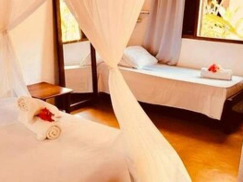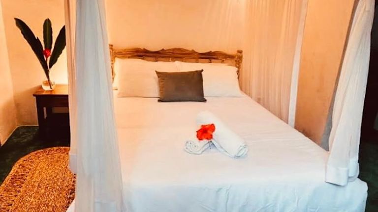 Das Big Bambu ist eine charmante Pension, die im Landhausstil mit handgefertigten Elementen aus der Region eingerichtet worden ist. Sie bietet einen Blick auf den Aussenpool und die Sonnenterrasse.