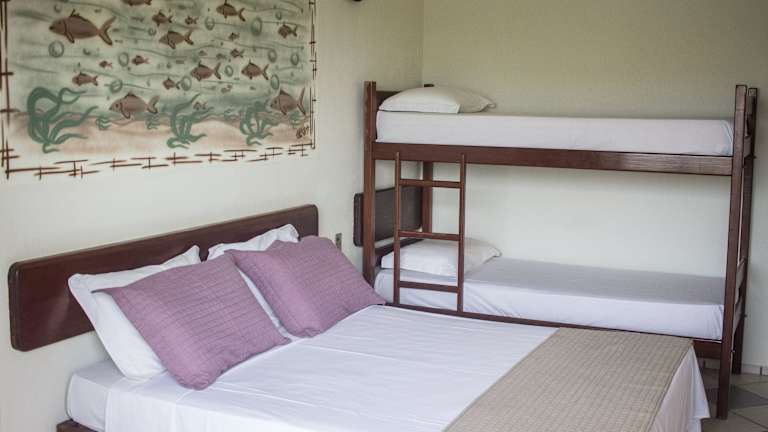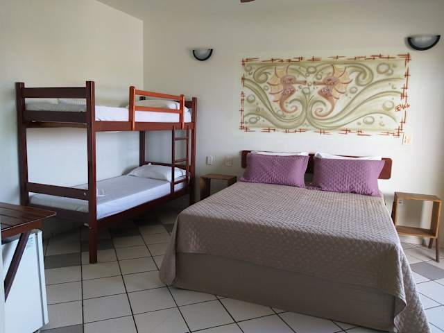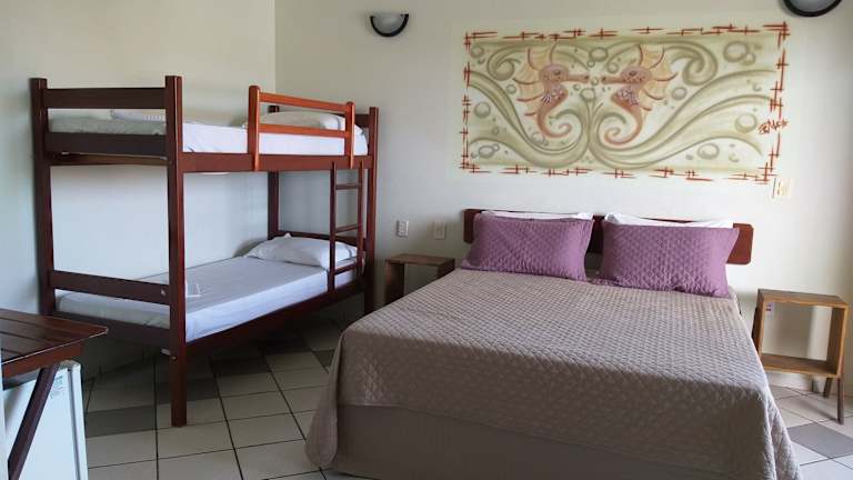 Die Zimmer im Pousada Coral de Fogo sind klimatisiert und bieten einen Balkon mit Gartenblick. Zur Ausstattung gehören ein TV, eine Minibar und ein eigenes Bad. Ein Wäscheservice wird ebenfalls angeboten.