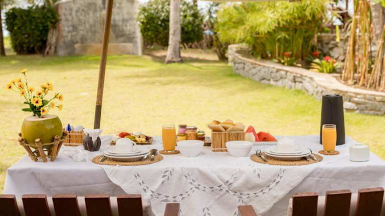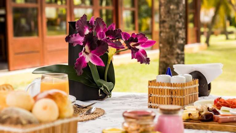 Im Restaurant der Pousada kosten Gäste frische Meeresfrüchte sowie französische und brasilianische Spezialitäten. Ein individuelles Frühstücksbuffet mit tropischen Früchten, Müsli, verschiedenen Brotsorten und Getränken wird ebenfalls angeboten. Es wird auf spezielle Ernährungsbedürfnisse Rücksicht genommen, wenn dies im Voraus angefragt wird.