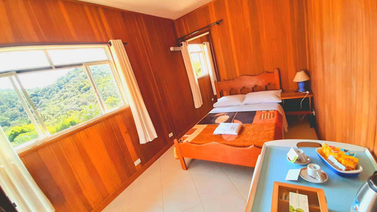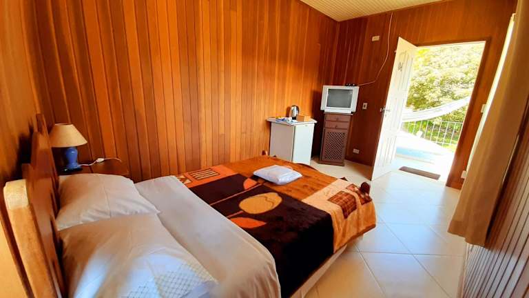 Die Zimmer in der Pousada Gota de Orvalho sind gemütlich eingerichtet und verfügen über ein eigenes Bad mit Dusche. Einige der Zimmer bieten zudem einen Balkon und einen herrlichen Blick auf die umliegenden Berge. Die Zimmer sind mit komfortabler Bettwäsche ausgestattet und bieten den Gästen eine angenehme Atmosphäre.