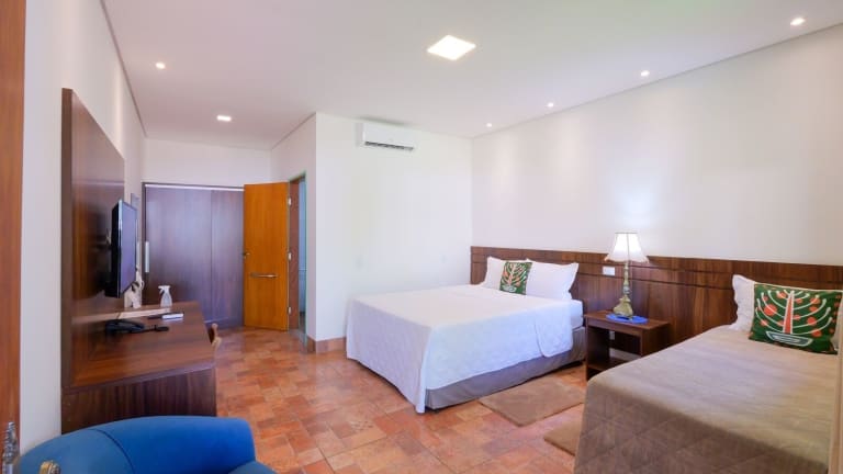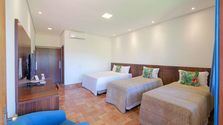 Die Zimmer in der Pousada Ouro Preto de Bonito sind komfortabel und modern eingerichtet. Jedes Zimmer verfügt über eine Terrasse, auf der Sie entspannen und die frische Luft genießen können. Die klimatisierten Zimmer sind mit einem eigenen Badezimmer ausgestattet, das eine Dusche und kostenfreie Pflegeprodukte bietet. Ein Flachbild-TV sorgt für Unterhaltung, während kostenfreies WLAN Ihnen ermöglicht, mit Ihren Lieben in Verbindung zu bleiben. Einige Zimmer bieten zudem einen Balkon mit herrlicher Aussicht. Bettwäsche wird gestellt, um Ihnen einen angenehmen Aufenthalt zu bieten.