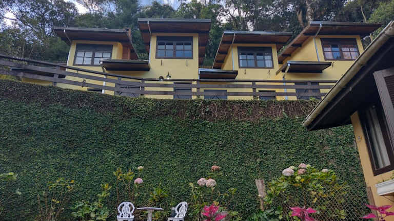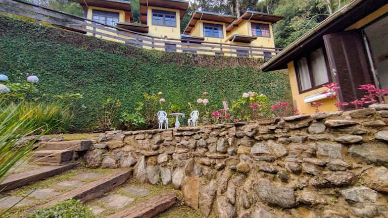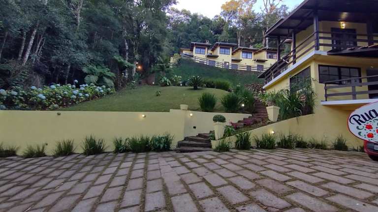 Die Unterkunft Pousada Villa de charme hospedagem com hidromassagem e lareira bietet Übernachtungsmöglichkeiten mit Annehmlichkeiten wie kostenlosem Wifi und einem Flachbild-TV. Die Unterkunft ist von einem Garten umgeben und bietet Gäste einen kostenlosen Privatparkplatz.