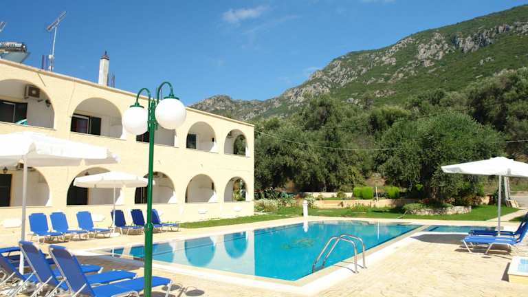 Das Hotel Prasoudopetra befindet sich im idyllischen Dorf Agios Matthaios, lediglich 150 m vom Strand Prasoudi entfernt. Die Lagune Korission ist in etwa 1 km erreichbar und die byzantinische Burg von Gardiki liegt 2 km entfernt. Privatparkplätze stehen kostenfrei zur Verfügung.