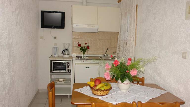 Das Prasoudopetra bietet Unterkunft zur Selbstverpflegung und zeichnet sich durch einen Aussenpool sowie ein Kinderbecken aus. Die Gäste haben Zugang zu einem Garten und einer Sonnenterrasse. Der kostenlose Shuttleservice vom Hotel zu einem nahegelegenen Supermarkt stellt eine praktische Bequemlichkeit dar. Der Mindestalter für den Check-in ist 18 Jahre, Haustiere sind nicht gestattet. Die Atmosphäre des Hotels ist heimelig und einladend.