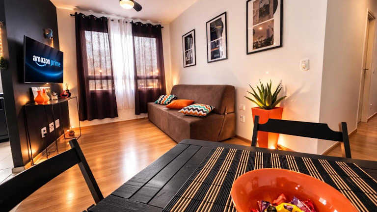 Prático Viena - Free Parking - 24 hour doorman bietet eine Ferienwohnung mit einem Garten und herrlichem Blick auf die Berge. Die Unterkunft zeichnet sich durch eine rund um die Uhr besetzte Rezeption und kostenlose Parkiermöglichkeiten aus.