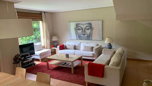 Das Precioso adosado in Urbanización mit Blick auf den Garten bietet eine angenehme Umgebung für einen gemütlichen Aufenthalt. Die rustikale Gestaltung und die Gartenlandschaft tragen zur heimeligen Atmosphäre bei. Das Ferienhaus wird von einem privaten Gastgeber geführt und ist auf Familien und chillige Feriengäste ausgelegt.