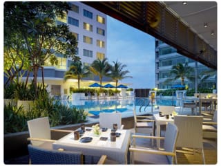 Den Gästen stehen diverse gastronomische Optionen zur Verfügung: ein klimatisiertes Restaurant, ein Café und eine Bar. Täglich wird ein abwechslungsreiches Frühstücksbuffet angeboten, und zum Mittag- und Abendessen können Menüs bestellt werden. Das Restaurant Royal Gourmet serviert chinesische Gerichte. Snacks und Getränke werden an der Poolbar angeboten.