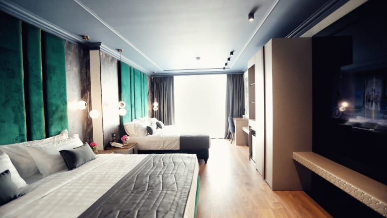 Die Zimmer verfügen über eine Klimaanlage, ein Doppelbett, einen Safe und einen Schreibtisch. Modern ausgestattet sind diese mit einem Flachbildfernseher, Wifi (ohne Gebühr) sowie Hausschuhen. Die Badezimmer sind mit einer Dusche, einem Haartrockner, Bademänteln, Kosmetikartikeln und einer Auswahl an Handtüchern ausgestattet. Das Hotel bietet zudem Familien- und Nichtraucherzimmer.